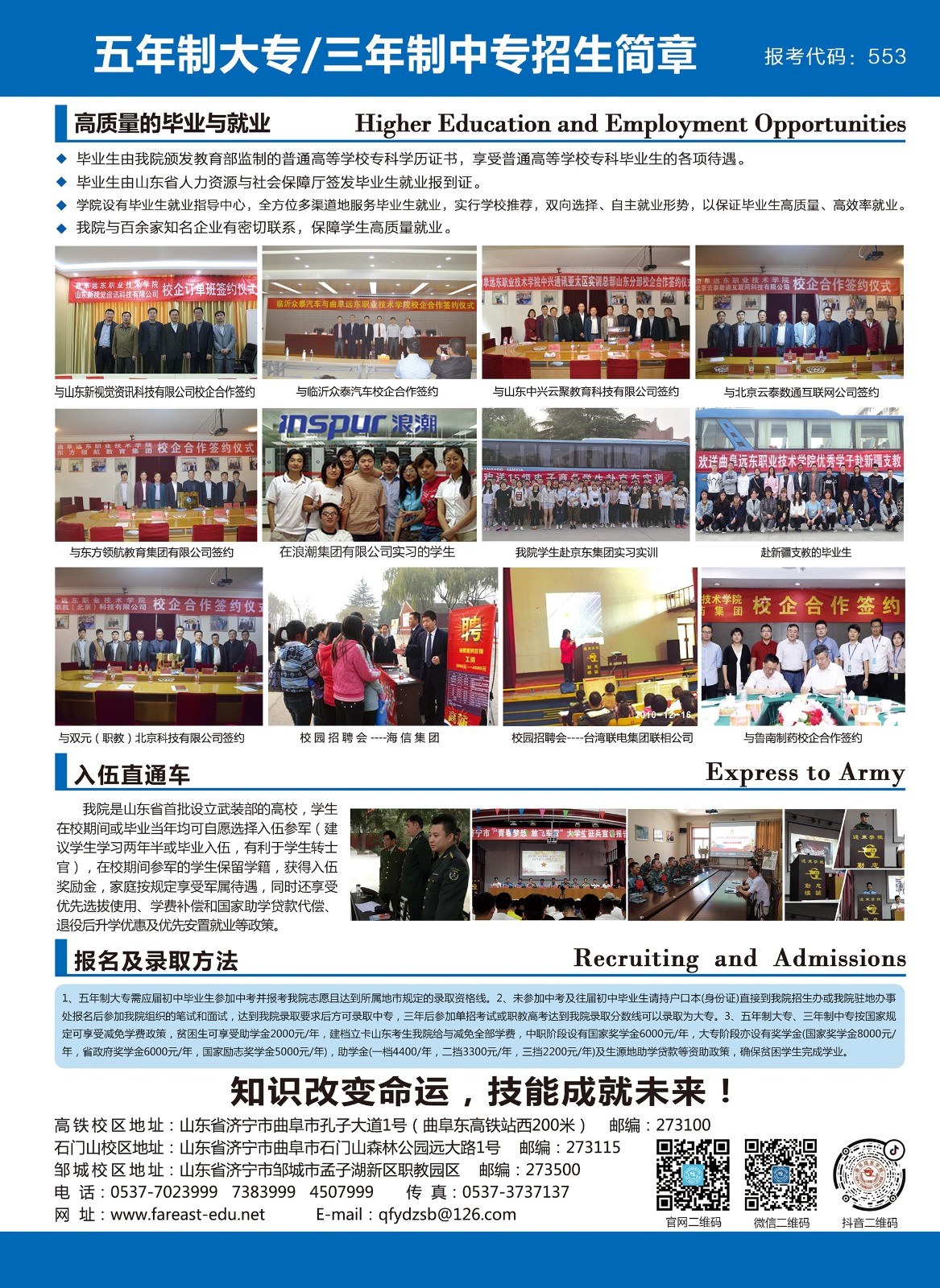 曲阜远东职业技术学院2021年五年制大专、三年制中专招生简章